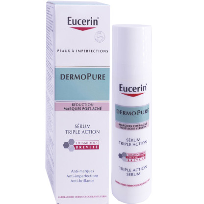 EUCERIN DERMOPURE SERUM TRIPLE ACTION 40ML est en vente en ligne sur le site de votre parapharmacie à prix discount. Ce sérum innovant offre une solution complète pour les peaux à tendance acnéique.