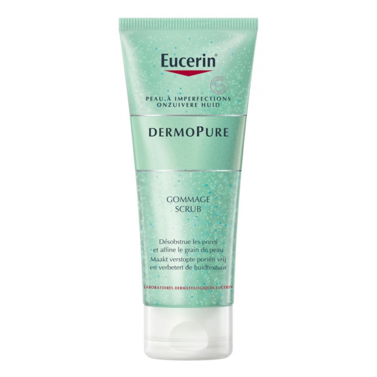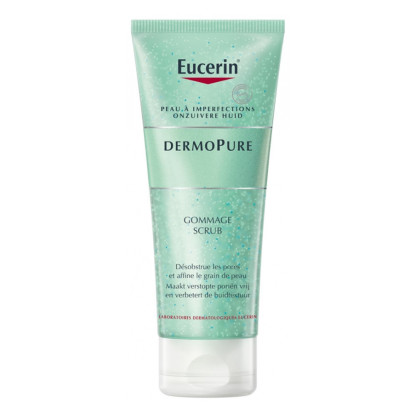 Les produits EUCERIN sont des soins « cosméto-médicaux » qui allient des produits réparateurs et de soins pour tous les types de peaux. La gamme DermoPure du laboratoire EUCERIN est composée de soins anti-imperfections riche en acide salicylique pour répondre aux peaux à tendance acnéique et redonner de la pureté au visage. Le Gommage Scrub DermoPure à base de tensioactifs doux et sans savon pour un nettoyage de la peau très doux, est composé de micro-particules et d’acide lactique. Il élimine les imperfections et impuretés, absorbe diminue et régule la quantité de sébum, désobstrue et resserre les pores de l’épiderme pour affiner le grain de peau, et limite l’apparition de points noirs et imperfections. La peau est nette et très douce.