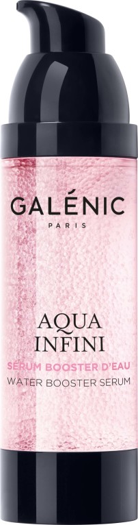 La gamme Aqua infini de GALENIC est composée de soins ultra-hydratants à base de Fleur de Rocher pour redonner aux peaux sèches éclat et confort. Aqua Infini Sérum booster d’eau est un soin enrichi en fleur de rocher, (plante du désert mexicain de Chihuahua) cette plante est utilisée dans un complexe Tamis moléculaire (brevet GALENIC) qui est composée d’un maillage spécifique de 3 tamis aux propriétés ultra-hydratante, associée à de l’acide hyaluronique, des micro-bulles d’huiles fines imperméables, de glycérine végétale et de bétaïne. Elle hydrate intensément la peau en profondeur afin de préserver en continue l’eau dans les cellules cutanées en déposant un film protecteur très fin à la surface de l’épiderme. Sa texture liquide fraîche en fera un soin agréable. Après le soin, la peau retrouve de la fraîcheur et de l’éclat, elle est douce et rebondie, et est délicatement parfumée aux belles senteurs boisées et florales (lotus, pivoine, musc et ambre).