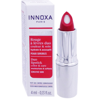 Depuis 1920, INNOXA offre aux femmes des soins de maquillage qui allient séduction, plaisir des textures, couleurs intenses, formules haute tolérance, spécialement développés pour la mise en beauté des peaux et des yeux sensibles. INNOXA propose une gamme de rouges à lèvres conçus pour le soin et la beauté des lèvres sensibles. La formule hypoallergénique des rouges duo couleur et soin, testé sous contrôle dermatologique, va agir par son cœur tendre sur le confort des lèvres et par son contour sur le maquillage, il va hydrater, protéger les lèvres de la sècheresse et les adoucir. INNOXA offre également une large palette de couleurs pour répondre à toute les envies féminines grâce à leur richesse en pigments intenses. Les rouges à lèvres duo couleur & soin faciles à appliquer, glissent sur les lèvres pour un résultat couleur intense et longue tenue garanti ! Couleur au choix : Papaye 005, Rouge 006