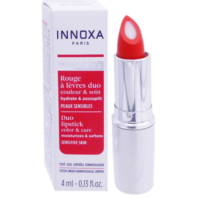 Le rouge à lèvres duo couleur & soin d'INNOXA discount, haute tolérance, couleur et protection dans votre parapharmacie en ligne à prix discount, pour un rouge à lèvres hydratant et sublimateur conçu pour le soin de toute les lèvres même sèches et sensibles. Couleur au choix.