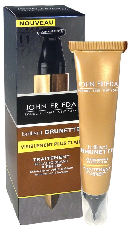 Brillant Brunette Traitement éclaircissant de JOHN FRIEDA, le soin capillaire à rincer qui éclaircit les cheveux bruns ou châtains qu’ils soient naturels, méchés ou colorés en 5 minutes seulement. !