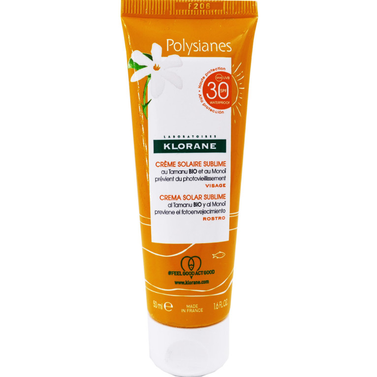 La Crème Solaire Sublime SPF30 au Tamanu BIO et au Monoï POLYSIANES discount de KLORANE, le meilleur de la botanique dans un soin conçu pour la protection et la beauté de la peau exposée au soleil, dans votre parapharmacie en ligne à prix discount. Adultes, Visage