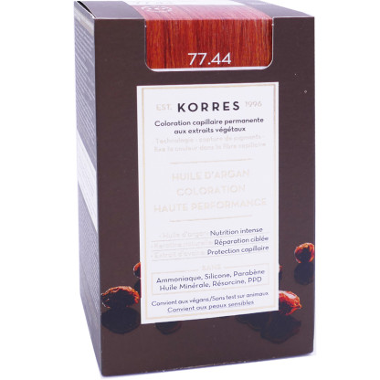 Coloration Capillaire Permanente discount de KORRES, la coloration haute performance dans votre parapharmacie en ligne à prix discount, pour assurer couleur intense, brillance et protection longue durée, Blond Cuivré Intense 77.44