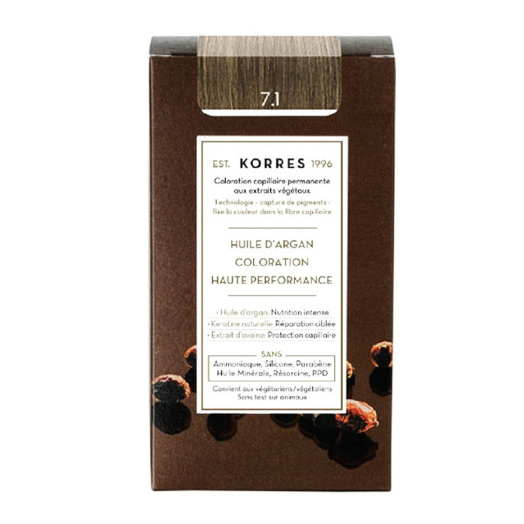KORRES COLORATION PERMANENTE HUILE ARGAN BLOND CENDRE 7.1