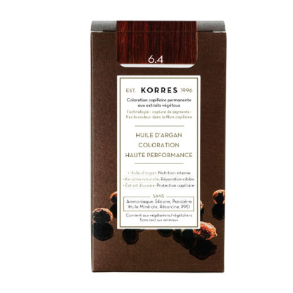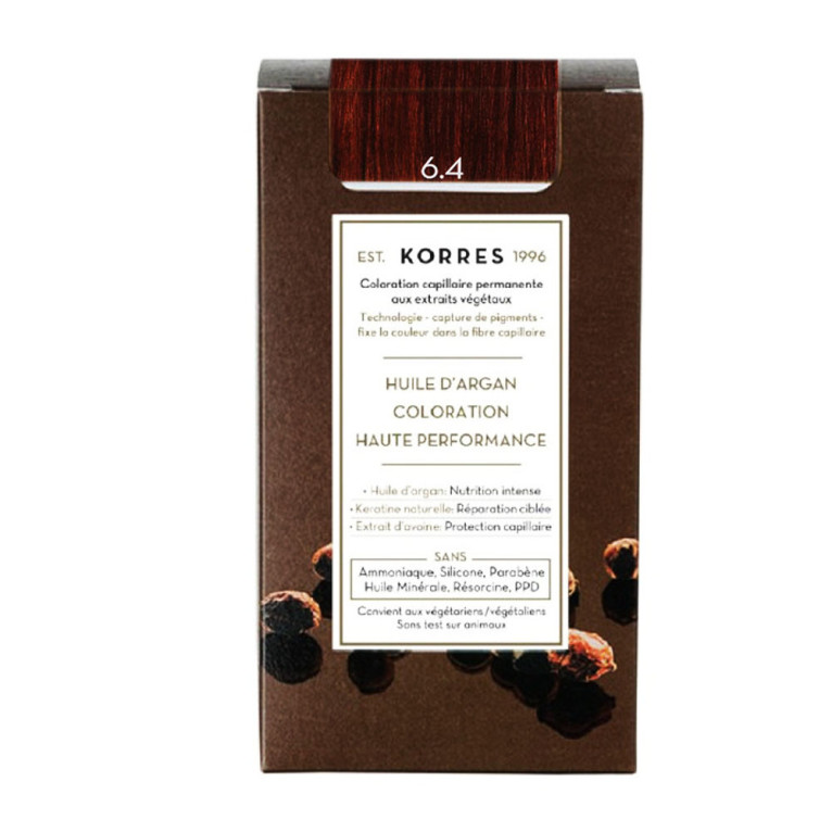 Coloration Capillaire Permanente discount de KORRES, la coloration haute performance dans votre parapharmacie en ligne à prix discount, pour assurer couleur intense, brillance et protection longue durée, Blond Foncé Cuivré 6.4