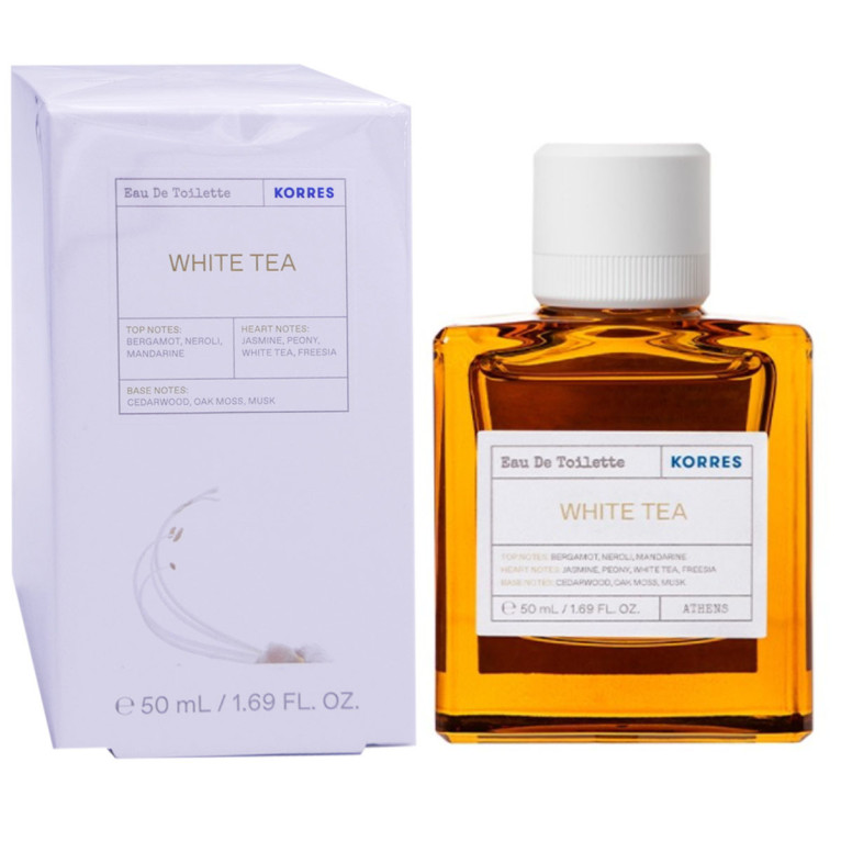 L’Eau de toilette White Tea pour femme de KORRES, une fragrance féminine pour la femme sensuelle aux notes hespéridés, et fraîches, dans votre parapharmacie en ligne à prix discount.