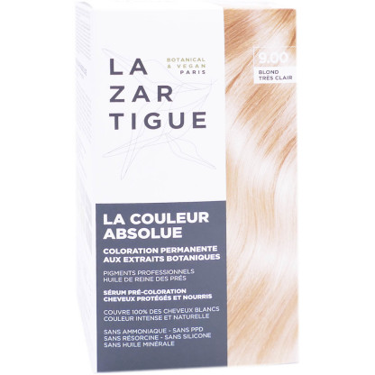 COULEUR ABSOLUE discount de LAZARTIGUE, la puissance végétale dans votre parapharmacie en ligne à prix discount, dans une coloration à la formule vegan pour assurer couleur intense, brillance et protection longue durée. Couleur Blond Très Clair 9.00