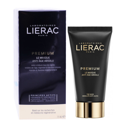 LIERAC est la première marque française dermo-cosmétique spécialisée dans la correction du vieillissement et des désordres cutanés, et instauratrice de la « cosmétique technique » qui allie plaisir des sens et efficacité. La gamme PREMIUM est constituée de soins anti-âge d’exception, aux galéniques sensorielles, inspirés de la médecine régénérative et développés pour apporter une réponse efficace aux signes du vieillissement cutané : rides, perte de densité, relâchement, teint irrégulier... PREMIUM Masque « Anti-âge Absolu » va redonner du volume et de l’éclat à tous les types de peaux du visage jour après jour et illuminer le teint dès la première application. A base de solution d’acide hyaluronique pur dosée à 10%, du complexe Premium Cellular dosé à 4,5% (extrait de fleurs rares, hexapeptide FX, Terpenoïde), et de micro-pigments soft-focus, il va combler les rides profondes, protéger et prévenir de l’apparition du vieillissement cutané, raffermir, et repulper le visage pour une belle peau, et redonner au teint de l’éclat. Sa texture généreuse et crémeuse enveloppe la peau pour retrouver une grande douceur comme du velours. Après le soin, la peau est délicatement parfumée aux belles senteurs fleuries et raffinées, le visage est redessiné, la peau plus ferme, et le teint éclatant.