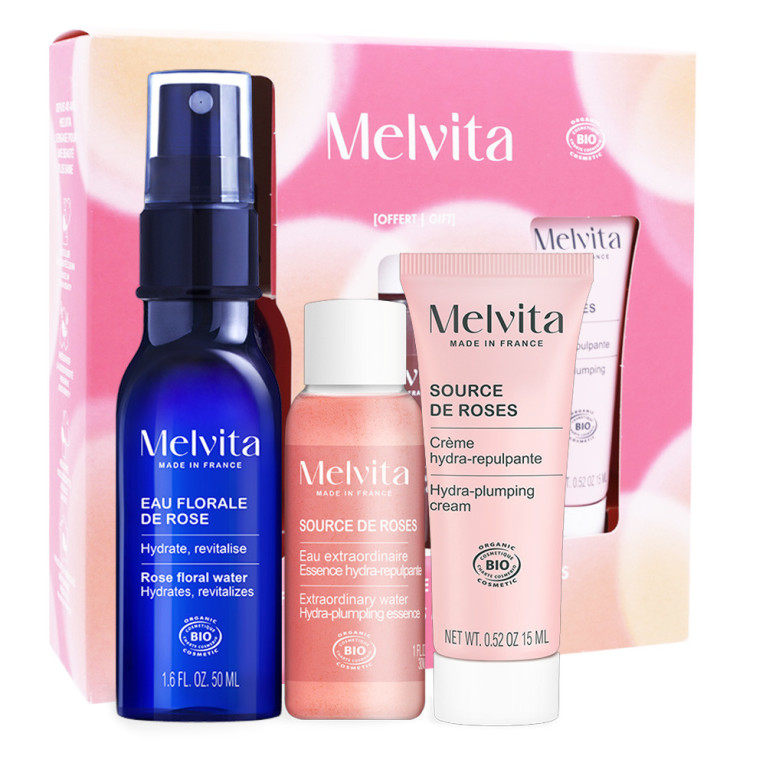 MELVITA COFFRET SOURCE DE ROSES CRÈME + EAU EXTRAORDINAIRE + EAU FLORALE
