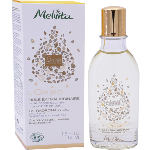 L’or Bio Huile Extraordinaire discount de MELVITA, toute la beauté de la nature dans votre parapharmacie en ligne à prix discount, au cœur d’un assemblage unique d’huiles végétales, conçu pour sublimer la peau et les cheveux. Visage, corps et cheveux Edition Limitée