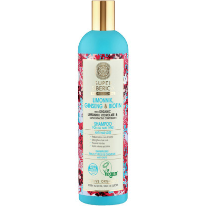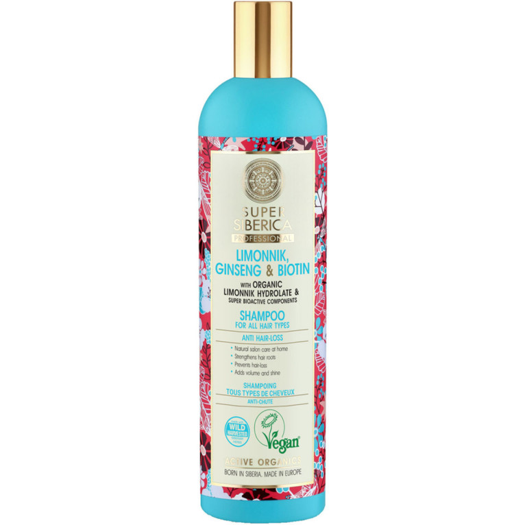 Le Shampooing Anti-chute Super Siberica est riche en hydrolat de Schisandra Nanai bio, de ginseng et de biotine (ou « vitamine beauté). Il va participer à la pousse des cheveux par son pouvoir antioxydant, diminuer leur chute et renforcer la chevelure. Après le shampooing les cheveux sont propres et doux. Jour après jour les cheveux sont plus forts et la chute ralentie.