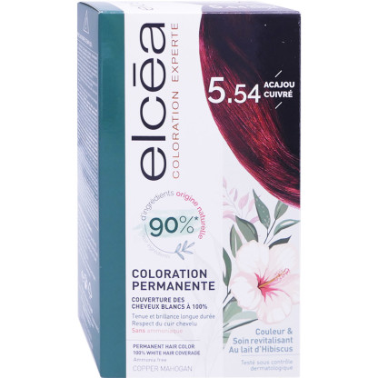 ELCEA Coloration Experte discount des laboratoires ELCEA, la coloration conçue par des experts capillaires dans votre parapharmacie en ligne à prix discount, pour assurer couleur intense, brillance et protection longue durée, Acajou cuivré N°5.54