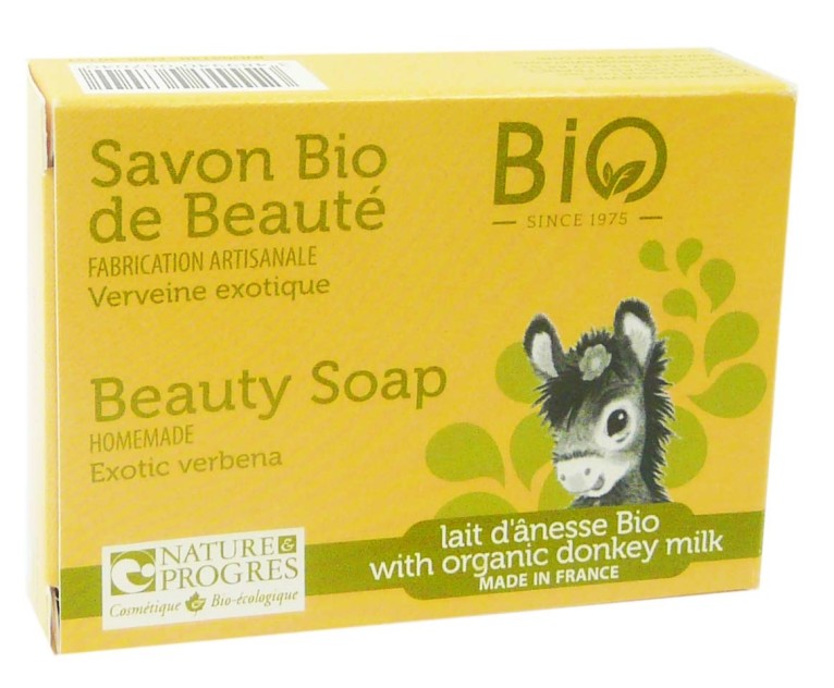 Le savon Bio de beauté Nature & Progrès, les multiples bienfaits du lait d’ânesse dans un savon artisanal, délicatement parfumé à la verveine.