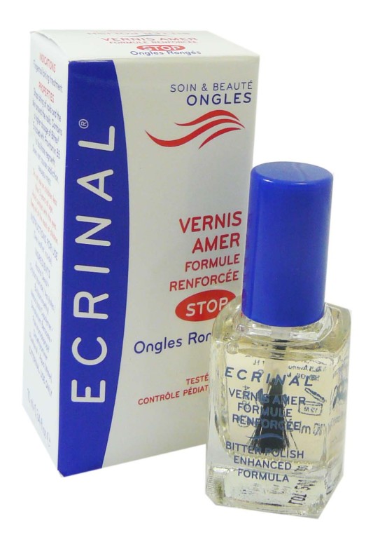 La marque ECRINAL des laboratoires Larima est destinée à répondre aux désordres capillaires ainsi qu'aux problèmes d'ongles fragilisés, cassés… Vernis amer d’ECRINAL est un vernis transparent à base de bitrex renforcé qui est un actif très amer nnon toxique, qui laisse un gout amer dans la bouche dès que l’envie de se ronger les ongles se fait sentir. Il va également permettre aux enfants de ne plus sucer leur pouce. Ce vernis amer va permettre aux ongles de repousser sans être mangé, facilite la repousse et aide également les enfants de plus de 3 ans à ne plus sucer leur pouce à partir de 3 ans. A base de Bitrex renforcé (un actif extrêmement amer). Non toxique