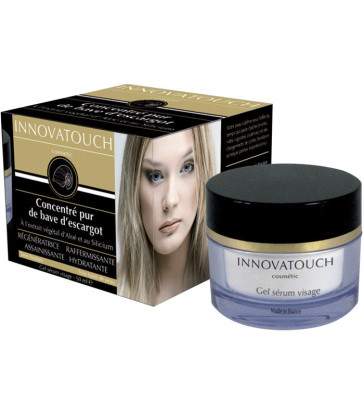 INNOVATOUCH Cosmetic développe des soins haute performance, hypoallergéniques et sans paraben, élaborés avec des ingrédients originaux issus de la nature dont l’efficacité est reconnue depuis la nuit des temps : concentré pur de bave d'escargot, peptides de venin de serpent, lait d'ânesse et baies de Goji. La gamme Concentré pur de bave d’escargot, riche en allantoïne, collagène, élastine et acide glycolique est spécialement conçue pour réduire à la fois les premières rides, les imperfections cutanées et améliorer visiblement la qualité de la peau. Le gel sérum visage d’INNOVATOUCH est enrichi en silicium et extrait végétal d’Aloé. Ce soin aux propriétés antiradicalaires stimule le renouvellement cellulaire, renforce la cicatrisation et apporte à la peau un véritable effet peau neuve. La peau est lisse, son grain est affiné, le teint est éclatant.