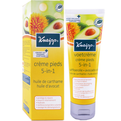 La Crème Pieds 5 en 1 discount de KNEIPP les vertus des extraits de plantes et huiles végétales dans votre parapharmacie en ligne à prix discount, dans un soin complet pour les pieds.