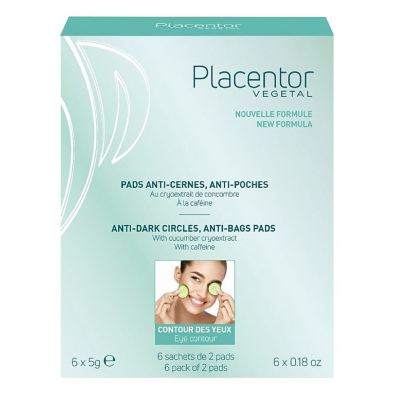 Placentor Végétal propose un large choix de soins pour le visage, le corps et les cheveux à base de placenta végétal. Obtenu à partir de la glycina hispida et de sucs de bourgeons de hêtre, le placenta végétal offre des qualités exceptionnelles de régénération cutanée et d’hydratation, dans le plus grand respect de l’équilibre des épidermes délicats. Il en résulte des soins à l’efficacité immédiate offrant une amélioration visible de la qualité de la peau. Les Pads anti-cernes, anti-poches, au conditionnement individuel tissu doux imbibé, sont enrichis en eau florale de Bleuet et extraits de concombre/euphrasia apaisants, en camomille adoucissante, en caféine drainante qui stimule la microcirculation et en extrait d’Acmella Oleracea, un extrait végétal relaxant. Ces patchs atténuent tous les signes de fatigue du regard : poches, cernes, pour rajeunir et éclairer le regard. Testé sous contrôle dermatologique.