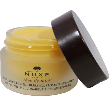 Nuxe, contraction de Nature et Luxe, développe depuis 25 ans des soins cosmétiques raffinés, élaborés avec des actifs végétaux précieux, sans huile minérale ni matière animale hormis les produits de la ruche, pour offrir des produits associant avec le plus bel équilibre : nature, performance et sensualité. La gamme Rêve de Miel propose des soins cocons pour nourrir, apaiser et réconforter les peaux les plus sensibles. Le Baume lèvres Ultra-nourrissant et réparateur lèvres Rêve de Miel qui fond sur les lèvres, nourrit et répare intensément, protège de la sècheresse et apaise les lèvres grâce au miel, à l’Oléoactif de Propolis, au beurre de karité, aux huiles végétales précieuses (rosier muscat, amande douce) et à la cire d’abeille. Les lèvres seront protégées et intensément nourries pour retrouver confort et douceur et délicatement parfumées aux notes de pamplemousse.