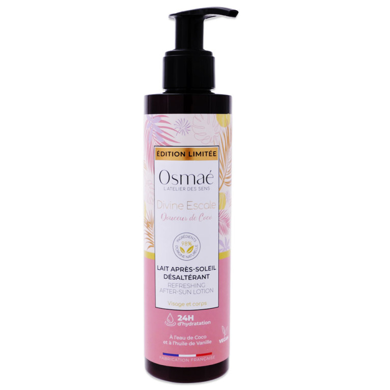 OSMAE DIVINE ESCALE DOUCEUR DE COCO LAIT APRÈS SOLEIL 200ML est en vente en ligne sur le site de votre parapharmacie à prix discount, offrant une hydratation apaisante après une exposition au soleil pour tous types de peau.