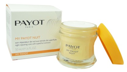 PAYOT, c’est avant tout une histoire de femmes et de mouvements. En observant la danseuse étoile Anna Pavlova, la créatrice de la marque, Nadia PAYOT eut l’idée de concevoir une gamme de soins associant modelage du visage, du corps, et produits de beauté innovants, sensoriels, offrant une parfaite affinité avec la peau, nichés dans des écrins aux forme galbées inspirées par ce mouvement féminin. Aujourd’hui, PAYOT propose une large gamme de soins pour répondre à tous les besoins cutanés des femmes. La gamme MY PAYOT offre des produits révélateurs de lumière pour restaurer éclat et luminosité aux peaux ternes et fatiguées. My PAYOY nuit est un soin idéal pour réparer la peau pendant la phase de régénération nocturne, et réveiller l’éclat du teint dès le matin. Il est composé de baies de Goji : ce « superfruit » antioxydant, capable de l’énergie cellulaire, de baies d’Acaï, riches oligo-éléments et polyphénols qui stimulent la microcirculation et révèlent l’éclat de la peau, du Bifidus actif protecteur et un extrait de noisette nourrissant. Résultat au réveil : la peau est souple, douce et confortable, le teint est lumineux.