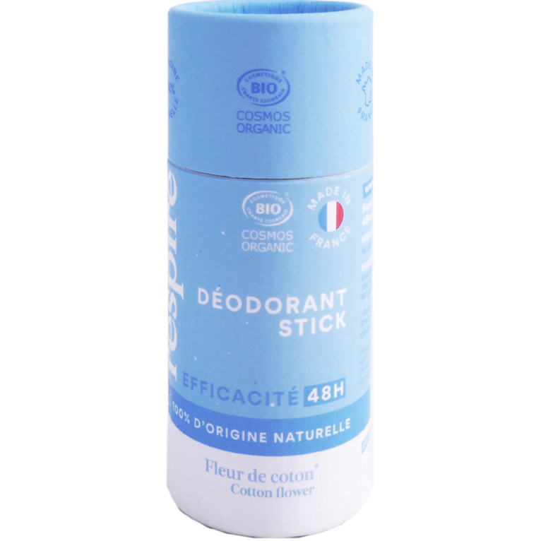 Déodorant Bio Fleur de coton discount de Respire, un déodorant en stick à 99% d'origine naturelle efficace 48h contre les mauvaises odeurs, dans votre parapharmacie en ligne à prix discount.