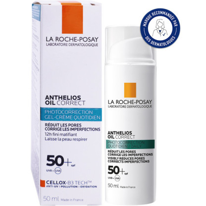 Anthelios Oil Correct Gel-crème Quotidien discount de La Roche Posay, la protection solaire quotidienne très efficace (SPF50+) pour les peaux sensibles et grasses à imperfections, dans votre parapharmacie en ligne à prix discount. Visage.