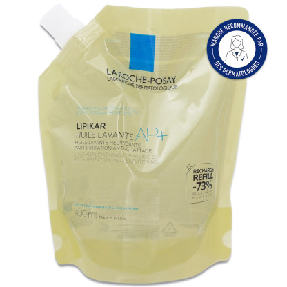 LA ROCHE-POSAY LIPIKAR RECHARGE HUILE LAVANTE AP+ 400ML est en vente en ligne sur le site de votre parapharmacie à prix discount, offrant un nettoyage doux pour les peaux sèches et sensibles.