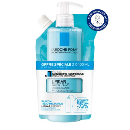 LA ROCHE POSAY LIPIKAR SRGRAS CREME LAVANTE ANTI-DESSECHEMENT 400ML+ ECO-RECHARGE 400ML est en vente en ligne sur le site de votre parapharmacie à prix discount, offrant une crème lavante anti dessèchement idéale pour les peaux sensibles et sèches, adaptée aux nourrissons jusqu'aux adultes.
