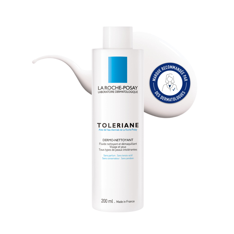 Depuis plus de 30 ans, le laboratoire LA ROCHE POSAY développe des produits dermo-cosmétiques élaborés avec de l’eau thermale de LA ROCHE POSAY riche en Sélénium aux propriétés anti-radicalaires, pour répondre à tous les besoins des peaux même les plus fragiles. La gamme TOLERIANE propose des soins haute-tolérance, sans parfum, sans conservateur ni alcool, formulés avec un minimum de composants pour limiter les risques d’allergie, afin d’offrir la plus grande douceur aux peaux intolérantes. TOLERIANE fluide dermo-nettoyant, à la texture lait enrichie en glycérine hydratante, est spécialement formulé pour nettoyer en douceur sans dessécher, prévenir les irritations et démaquiller les yeux et le visage des peaux intolérantes à tendance sèche. Sans tensio-actif. Avec ou sans rinçage.