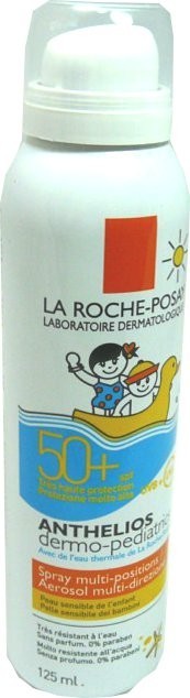 Depuis plus de 30 ans, le laboratoire LA ROCHE POSAY développe des produits dermo-cosmétiques élaborés avec de l’eau thermale de LA ROCHE POSAY riche en Sélénium aux propriétés anti-radicalaires, pour répondre à tous les besoins des peaux même les plus fragiles. La gamme ANTHELIOS recommandée par les dermatologues, propose des produits aux formules haute-tolérance pour assurer la protection solaire des peaux les plus sensibles. ANTHELIOS DERMO-PEDITRICS Spray SPF 50+, au format pratique et simple d’utilisation grâce à l’applicateur multi-positions, est spécialement conçu pour assurer une très haute protection UVA/UVB, protection renforcée contre les UVA longs, grâce au système filtrant exclusif Mexoplex®. Ce soin est particulièrement recommandé pour assurer la protection de la peau délicate de l’enfant, en cas d’intolérance solaire, et pour préserver des dommages cellulaires à long terme causés par le soleil. Formule testée sous contrôle dermatologique, allégée en filtres chimiques et en nickel, sans parfum, sans paraben, non comédogène. Très résistant à l'eau.
