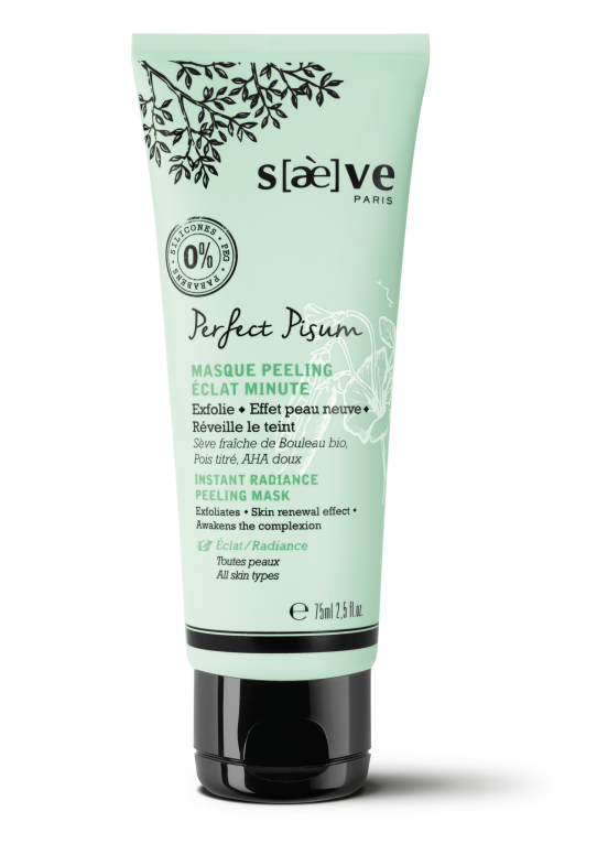 La marque Saeve, est la première marque de cosmétiques française qui propose sous le brevet Immunox ® des soins naturels, experts et ultra-performants à base de Sève fraîche de Bouleau bio aux vertus anti-oxydante, détoxifiante, reminéralisante, revitalisante, et de Chaga bio, «champignon de l’immortalité» qui renferme l’une des plus fortes concentrations en anti-oxydants (25%)du monde végétal et d’autres ingrédients naturels surprenants. Une marque aux promesses authentiques qui utilise une forte concentration d’actifs pour un résultat sur la peau évident, visible et durable. La gamme SAEVE Perfect est une gamme composé d’extrait de Pois Titré aux vertus éclaircissante et anti-taches pour une peau unifiée et radieuse. SAEVE Perfect Pisum Masque Peeling est un masque enrichi en AHA , qui va exfolier la peau en douceur. Sa formule riche en actifs va lisser et affiner le grain de peau, réduire les irrégularités cutanés. Le teint est unifié, lumineux et parfaitement nette et incroyablement plus douce…une véritable peau de bébé.