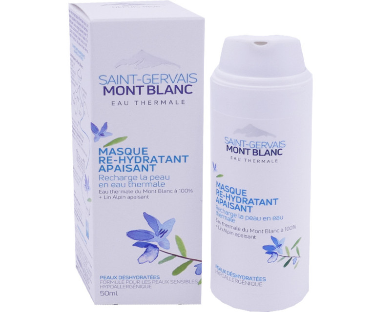 Le laboratoire SAINT-GERVAIS développe des produits dermo-cosmétiques élaborés avec de l’eau thermale de SAINT-GERVAIS Mont Blanc du massif alpin riche en minéraux aux propriétés réparatrices apaisantes, et cicatrisantes, pour répondre à tous les besoins des peaux même les plus fragiles. Saint-Gervais Mont Blanc Masque Re-hydratant est un masque hypoallergenique et ultra-hydratant qui va apaiser et nourrir les peaux en manque d’hydratation. Grâce à sa formule à base d’eau thermale et de Lin Alpin aux vertus apaisante, la peau se remplie d’eau et de minéraux pour laisser place à une peau douce, plus souple et un teint éclatant de lumière.