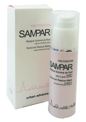 La gamme Pure Perfection de SAMPAR est composée de soins destinés aux peaux grasses ayant des imperfections pour leur redonner de la clarté et toute leur beauté. Le masque gomme nuit composé de vitamine, protéine et extraits de marron d’inde et lentille, et du complexe Urban Advance va matifier et protéger la peau tout au long de la nuit pour lui redonner un teint lumineux et estomper toutes les imperfections le lendemain matin. A base de 3 actifs naturels (sérum de karité, endorphine de menthe, probiotique sucré), d’extraits de lentille et de marron d’inde, de vitamine F et de protéine de soja qui est riche en nutriments essentiels, le masque va réguler la quantité de sébum et éliminer l’excès en resserrant les pores de l’épiderme, réparer, favoriser la cicatrisation des marques et rougeurs des imperfections, protéger la peau des agressions extérieures en renforçant ses défenses naturelles et en lui redonnant de la vitalité, matifier pour atténuer les imperfections et rougeurs, booster le métabolisme de la peau pour agir en profondeur pendant le sommeil, et apaiser de tout inconfort. Au réveil la peau est matifiée, lisse, douce et retrouve sa luminosité.