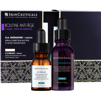 Le coffret ROUTINE ANTI-AGE Rides + Perte de fermeté discount de SKINCEUTICALS, 2 soins dermo- professionnel anti-oxydant, anti-âge conçu pour corriger les rides et la perte de fermeté pour un visage éclatant, dans votre parapharmacie en ligne à prix pas cher. Correct H.A. Intsifier (30ml) ; CE Ferulic (15ml) offert.