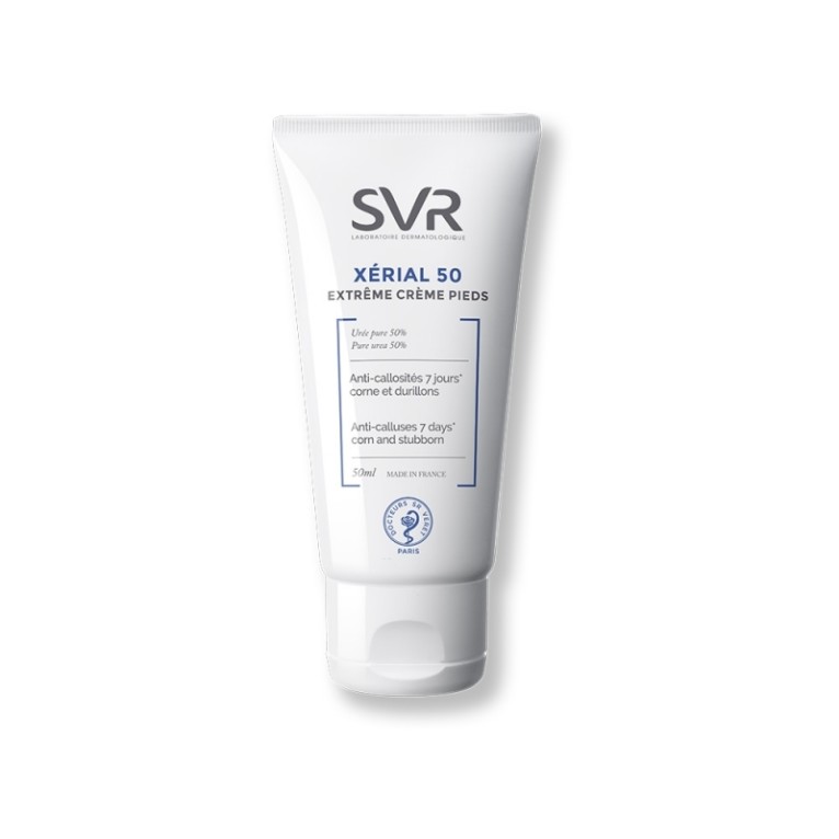 Afin de proposer des solutions aux problèmes de sécheresse cutanée des pieds abimés, SVR a conçu une gamme de soins dermo-cosmétiques à base d’urée pure au pouvoir hautement hydratant : XERIAL Pieds. XERIAL 50 Extrême, à la texture non collante qui pénètre la peau sans effet de gras, est spécialement formulé pour réduire les rugosités, callosités et durillons rebelles des pieds très secs en seulement 7 jours. Sa composition fortement concentrée en acide salycilique associe de l’urée dosée à 50 % et du beurre de karité nourrissant. Sans parfum, sans paraben, peut s’utiliser également sur les zones épaisses des mains et des coudes.