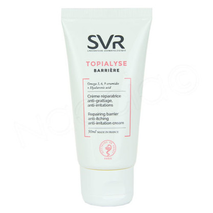 Afin de répondre aux besoins particuliers des peaux très sèches à tendance atopique sujettes aux démangeaisons et irritations, SVR a conçu une gamme de soins aux propriétés apaisantes et réparatrices : TOPIALYSE. La crème Barrière réparatrice Topialyse de SVR composée d’omégas 3, 6 et 9 et d’acide hyaluronique, va apaiser la peau de tout inconfort et grattages dès l’application, la réparer et la protéger des agressions extérieures mécaniques ou chimiques causées par les détergents, en reformant le film protecteur pour lutter contre les récidives immédiatement et pour longtemps. Sa texture non collante et non grasse pénètre rapidement à l’application pour laisser la peau douce. Protégée, la peau sera apaisée dès l’application et pour longtemps.