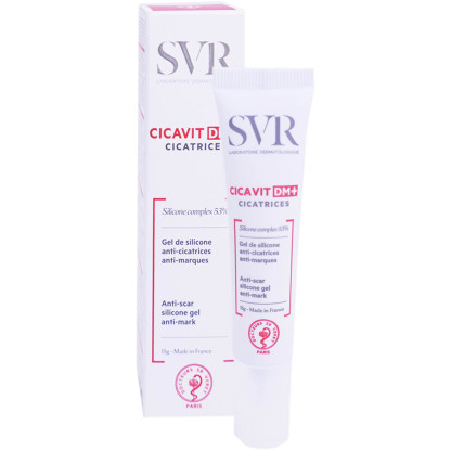 CICAVIT DM+ discount des laboratoires SVR, le dispositif médical en gel formulé par des dermatologues dans votre parapharmacie en ligne à prix discount, pour traiter les cicatrices et réduire marques et rougeurs liées à des lésions cutanées post-intervention dermatologique ou chirurgicale (plaies fermées) ou de brûlures superficielles du 2nd degré (laser, radiothérapie). Pour les adultes. Visage, corps, articulations, zones mobiles
