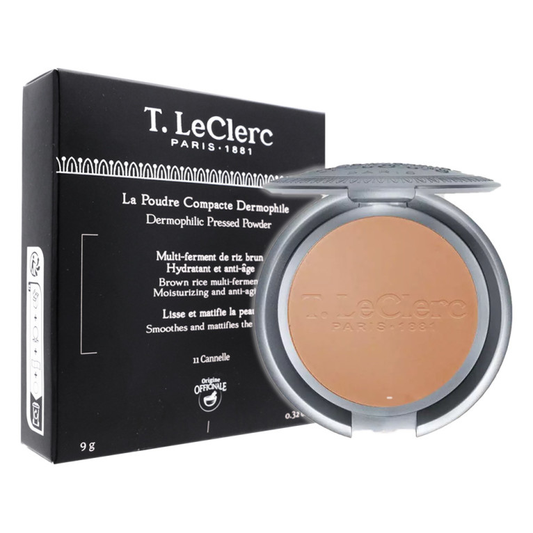 La marque T.LeClerc sublime la beauté des femmes depuis 130 ans et a développé une large gamme de produits de maquillage adulés par les maquilleurs professionnels et les Top- models du monde entier. La poudre libre est le produit mythique de la marque : son fondateur Théophile LeClerc, véritable esthète, conçoit une poudre de riz destinée aux élégantes du Paris de la belle époque. La finesse et la légèreté de cette poudre en font un succès immédiat, succès non démenti à ce jour. Cette poudre est aujourd’hui proposée en version compacte, une texture fine et douce pour unifier et matifie le teint, et assurer une peau subtilement veloutée. Et comme chaque carnation de peau est unique, la gamme propose 12 teintes de poudre. Sa formule douce à base d’amidon de riz, de talc et d’oxyde de zinc, laisse la peau respirer et assure un teint exceptionnel, sans défaut, tout au long de la journée.