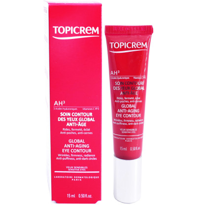 AH3 Contour des Yeux global anti-âge discount de Topicrem, un soin pour hydrater, corriger les rides installées, cernes et poches, dans votre parapharmacie en ligne à prix discount.