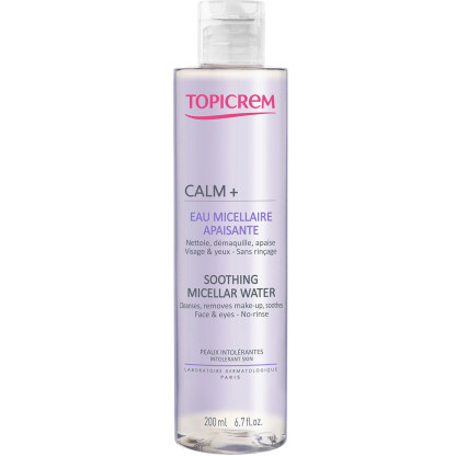 L’Eau micellaire CALM+ discount de TOPICREM, Le soin expert dans votre parapharmacie en ligne à prix discount, dans un soin 2 en 1 pour nettoyer en douceur et démaquiller le visage et les yeux des peaux sensibles et intolérantes.