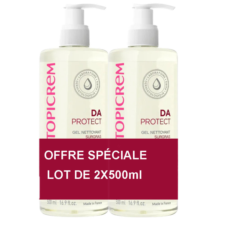 TOPICREM DA PROTECT GEL NETTOYANT SURGRAS LOT DE 2X500ML: Découvrez ce gel nettoyant surgras en vente en ligne, sur le site de votre parapharmacie à prix discount, pour une peau douce et protégée au quotidien.