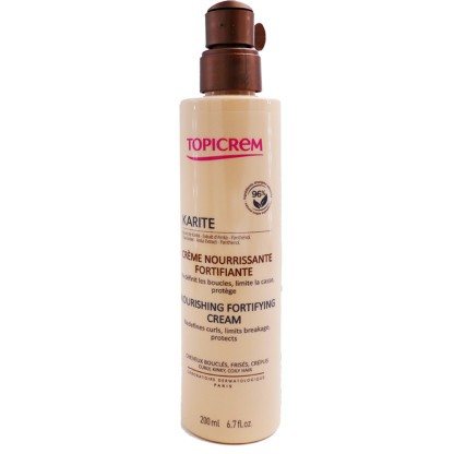 Crème Nourrissante Fortifiante KARITE discount de TOPICREM, un soin capillaire haute nutrition pour sublimer et fortifier les cheveux bouclés, frisés et crépus, dans votre parapharmacie en ligne à prix discount.