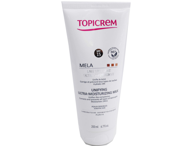 Mela Lait Unifiant Ultra-hydratant discount de TOPICREM, le soin éclaircissant anti-tâches pour unifier la couleur de la peau sensible, dans votre parapharmacie en ligne à prix discount. Corps.