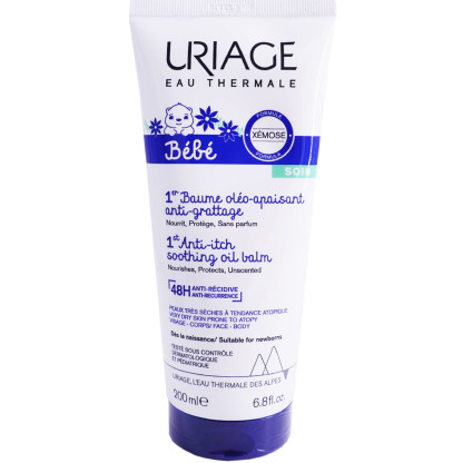 La gamme BEBE des laboratoires URIAGE est composée de soins douceur de haute tolérance sans parfum, sans paraben, sans conservateur, pour la toilette, la protection, les petits soucis du quotidien des tout-petits dès la naissance. Le 1er Baume Oléo-Apaisant Anti-grattage Formule Xémose est le soin à la texture rapidement absorbée et non collante facile à étaler, qui protège la peau en formant et renforçant le film protecteur sur l’épiderme pour lutter contre les agressions extérieures et les récidives de démangeaisons génératrices, module et rééquilibre la barrière de défense de la peau, hydrate et apaise immédiatement et pour 48 heures grâce à sa richesse en eau thermale d’Uriage qui est riche en sels minéraux et oligo-éléments, aux complexes brevetés cerasterol-2F TLR2-Regul ainsi qu’au nouveau brevet Chronoxine. La peau retrouve tout son confort, sa douceur et sa souplesse dès la première utilisation. Hypoallergénique, testée sous contrôle dermatologique et pédiatrique.