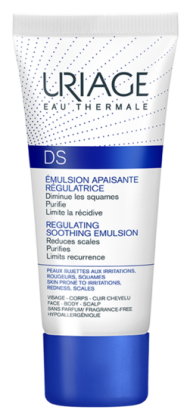 URIAGE a conçu une gamme de soins régulateurs pour apaiser les peaux sujettes aux irritations, aux rougeurs et aux squames : D.S. Ce soin régulateur est spécialement formulé pour apaiser les sensations d’inconforts des zones irritées ou squameuses, tout en restructurant l’épiderme. Il permet de réguler la prolifération de levures responsables des squames et agit directement sur les irritations grâce à la technologie breveté TLR2-Régul. Grâce à ses actifs assainissant, la peau est purifiée. Formule hypoallergénique, sans parfum, non comédogène.