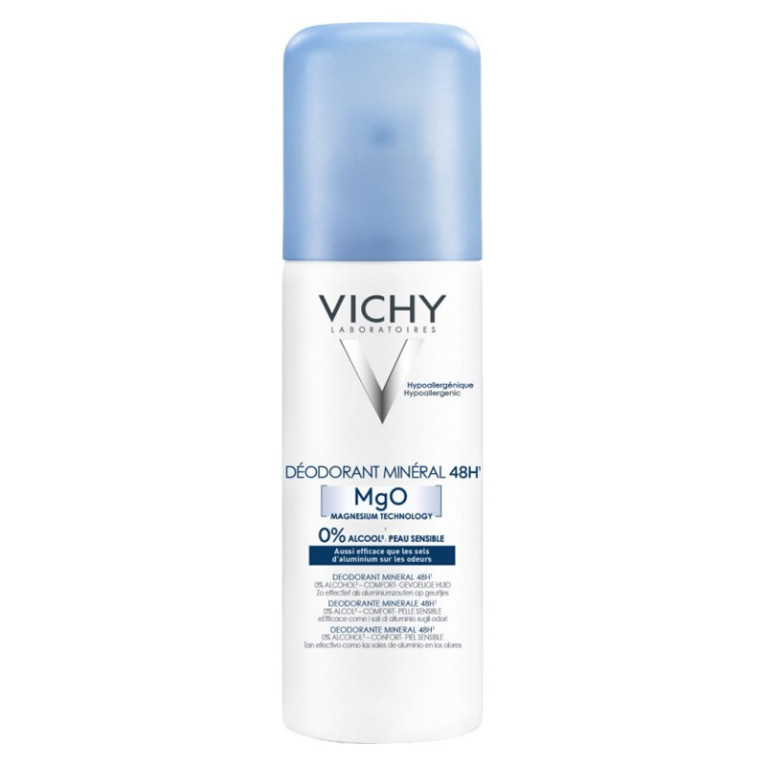 L’Eau Thermale de VICHY puise ses multiples bienfaits au cœur des volcans d’Auvergne. Formulée par la nature, non reproductible, riche en minéraux, cette eau unique offre ses innombrables vertus à la peau : apaisantes, fortifiantes et régénérantes. Les laboratoires VICHY ont intégré les vertus thérapeutiques de cette eau précieuse dans leurs produits cosmétiques. VICHY a conçu une gamme de déodorants alliant efficacité optimale et haute tolérance cutanée pour assurer une sécurité sans faille longue durée, à toutes les peaux même les plus sensibles. Le Déodorant Minéral sans sels d'aluminium aérosol de VICHY, délicatement parfumé effet « linge-propre », associe de l’oxyde de magnésium, 5 minéraux et de la Provitamine B5 apaisante pour offrir une efficacité anti-odeur longue-durée et une tolérance sans concession quel que soit le type de peau. Sans éthanol, sans parabène, tolérance optimale même sur peaux épilées.