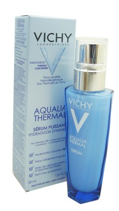 VICHY a conçu une gamme de soins enrichis en eau thermale de Vichy pour offrir aux peaux sensibles toutes les vertus apaisantes et fortifiantes de cette eau de beauté : AQUALIA THERMAL. Le sérum à la texture fraîche et parfumée qui se transforme en eau au contact de la peau, est un soin intensif spécialement formulé pour stimuler la circulation d’eau dans toutes les zones du visage et hydrater intensément la peau. Sa composition associe à l’eau thermale de Vichy de l’acide hyaluronique et de l’aquabioryl capables de transporter l’eau nécessaire à l’hydratation de la peau, ainsi que les λ-Carraghénanes qui assurent une fonction barrière pour maintenir cette hydratation sur la durée. Résultat : le teint s’éclaire, la peau est repulpée et les ridules lissées.
