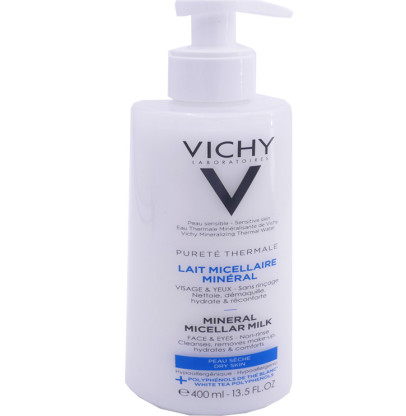 C’est au cœur d'une nature préservée, sur les terres volcaniques d’Auvergne, que l’eau de Vichy prend sa source. Au cours d’un parcours millénaire à 4 000 mètres de profondeur, elle se charge de 15 minéraux et nutriments essentiels à la beauté de la peau. L’Eau Minéralisante de VICHY est l'actif star des formules de soin VICHY. Le lait minéral micellaire nettoyant et démaquillant VICHY laisse la peau hydratée, nette et sans inconfort grâce à sa formulation unique associant une technologie micellaire à l'eau minérale de Vichy et aux polyphénols de thé blanc connus pour ses vertus hydratantes. Ce lait nettoyant et démaquillant élimine toutes les impuretés, les traces de pollution et le maquillage, sans rinçage. Peau et yeux sensibles, y compris les porteurs de lentilles.