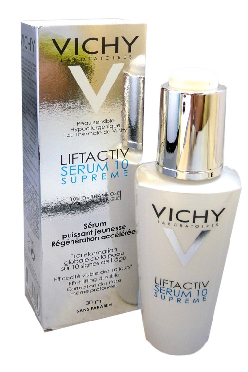 La gamme Liftactiv de VICHY est composée de soins anti-âges pour combler et lisser les rides et redonner de la fermeté au visage. Liftactiv Sérum 10 suprême est un soin qui diminue l’apparence des rides même les plus profondes et lisse la peau dès l’application en affinant le grain de peau, régénère rapidement l’épiderme afin de redonner au visage de la fermeté grâce au complexe d’actifs anti-âge le rhamnose (origine végétale) et à sa technologie Derme Source. L’eau thermale de Vichy répare et apaise la peau pour retrouver tout son confort. Sa texture fraîche, ultralégère non grasse et non collante est vite absorbée pour le plus grand confort de la peau. Dès l’application, la peau est lisse, le visage est ferme et éclatant, et les rides estompées pour toute la journée du matin jusqu’au soir ! En seulement 1 mois, la peau est liftée.